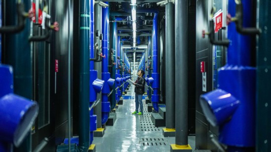 工作人員在中國(guó)聯(lián)通貴安數(shù)據(jù)中心對(duì)微模塊機(jī)房運(yùn)行狀態(tài)進(jìn)行巡檢(2023年5月23日攝)。新華社記者 陶亮 攝