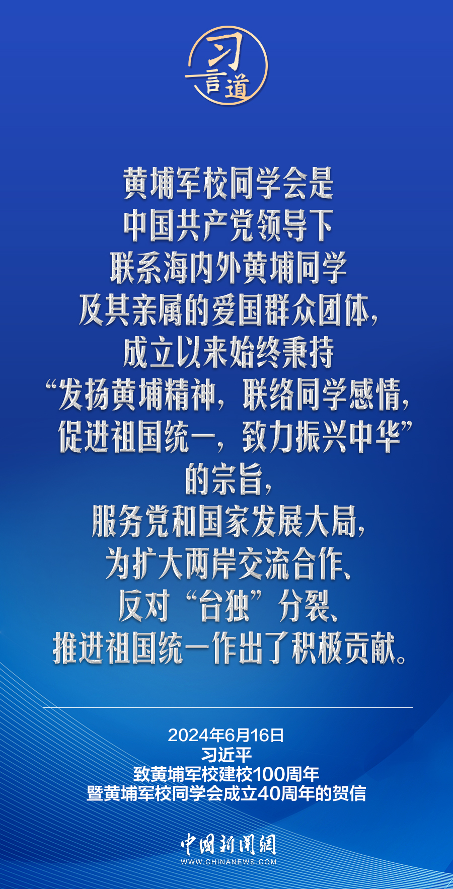 在黃埔軍校建校100周年暨黃埔軍校同學會成立40周年之際,中共中央總書記、國家主席、中央軍委主席習近平發(fā)來賀信,代表中共中央向黃埔軍校同學會表示熱烈祝賀,向廣大海內(nèi)外黃埔同學及其親屬致以誠摯問候。習近平指出——