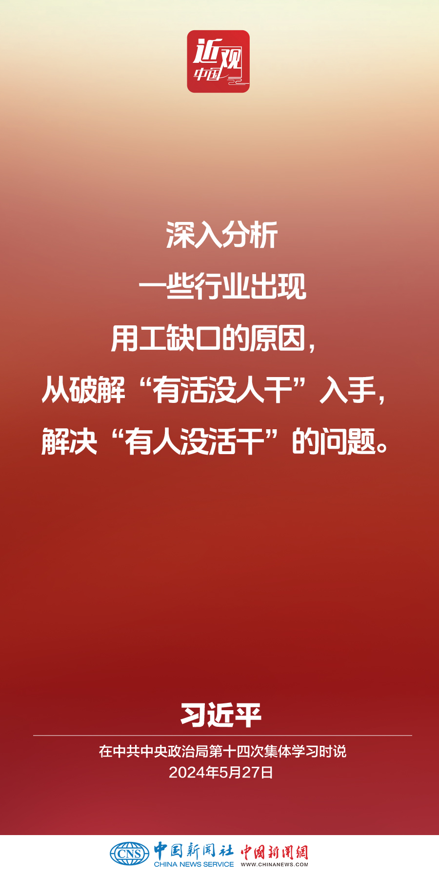 中共中央政治局5月27日下午就促進(jìn)高質(zhì)量充分就業(yè)進(jìn)行第十四次集體學(xué)習(xí)。中共中央總書記習(xí)近平在主持學(xué)習(xí)時強(qiáng)調(diào)——