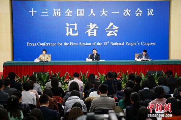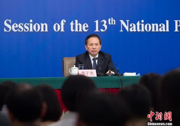 3月17日,環(huán)保部部長李干杰就“打好污染防治攻堅戰(zhàn)”相關(guān)問題回答中外記者提問。中新網(wǎng)記者 李卿 攝
