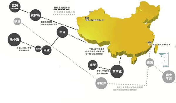 ??“一帶一路”貫穿亞歐非大陸,一頭是活躍的東亞經(jīng)濟(jì)圈,一頭是發(fā)達(dá)的歐洲經(jīng)濟(jì)圈,中間廣大腹地國家經(jīng)濟(jì)發(fā)展?jié)摿薮?。絲綢之路經(jīng)濟(jì)帶重點(diǎn)暢通中國經(jīng)中亞、俄羅斯至歐洲(波羅的海);中國經(jīng)中亞、西亞至波斯灣、地中海;中國至東南亞、南亞、印度洋。21世紀(jì)海上絲綢之路重點(diǎn)方向是從中國沿海港口過南海到印度洋,延伸至歐洲;從中國沿海港口過南海到南太平洋。