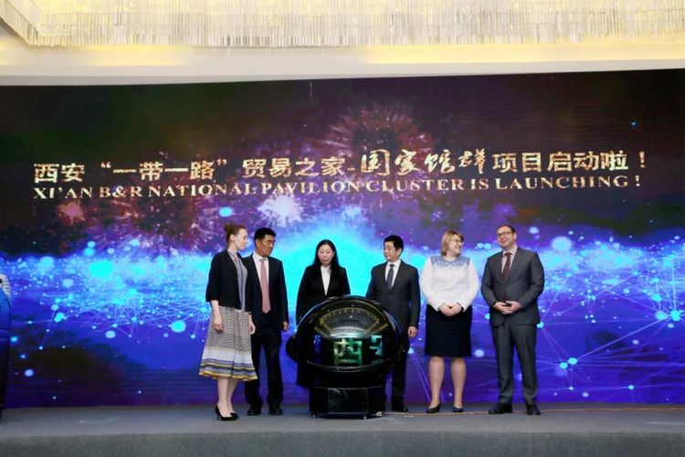 在肖西亮副市長(zhǎng),楊六齊同志和吉爾吉斯斯坦駐華大使、白俄羅斯駐華使館商務(wù)參贊等外方嘉賓的共同助推下,西安“一帶一路”貿(mào)易之家-國(guó)家館群正式啟動(dòng)。