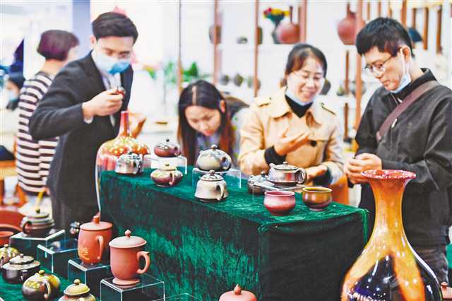 10月17日,2020重慶國際文化旅游產(chǎn)業(yè)博覽會榮昌展區(qū),精美的榮昌陶器令觀眾愛不釋手。本組圖片均由記者齊嵐森攝/視覺重慶