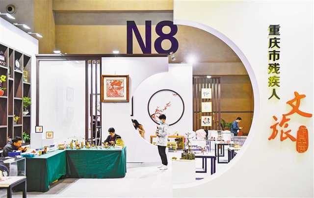 10月17日,觀眾正在重慶市殘疾人文旅作品展區(qū)參觀。