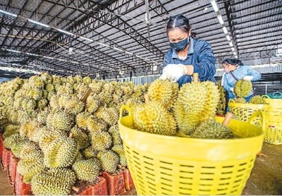在泰國(guó)尖竹汶府一家榴蓮分揀工廠(chǎng),工作人員在分揀榴蓮。這里不少榴蓮園視中國(guó)市場(chǎng)為主要客戶(hù)來(lái)源地。新華社記者 王 騰攝
