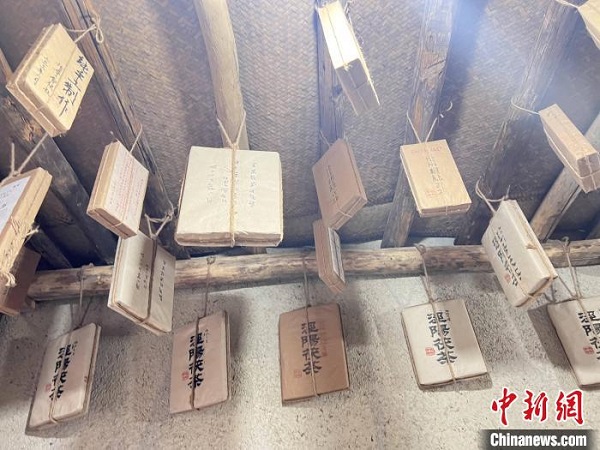 在茶磚進(jìn)行陳化的閣樓上,記者看到賈振不時(shí)翻轉(zhuǎn)著茶磚,令其每一面通風(fēng)充分、發(fā)酵均勻,茶磚中的“金花”,在賈振和工人們的精心照料下緩緩生長(zhǎng)。