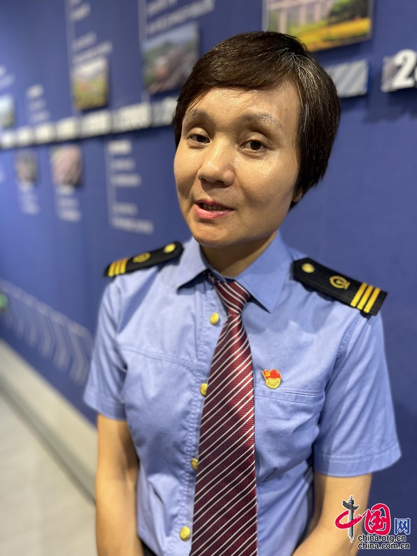 國(guó)鐵南寧局貨運(yùn)服務(wù)中心副主任蔣玉珍接受中國(guó)網(wǎng)記者采訪。中國(guó)網(wǎng)記者 唐佳蕾/攝