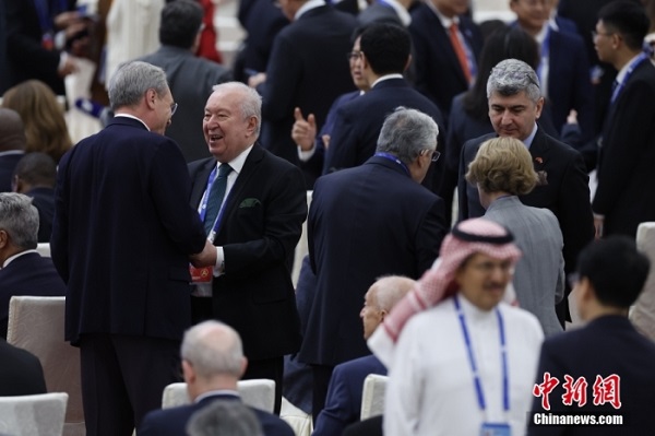 10月18日,第三屆“一帶一路”國際合作高峰論壇在北京舉行開幕式。圖為與會代表在開幕式前溝通。中新社記者 韓海丹 攝