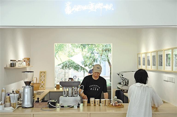 2022年7月5日,咖啡師沈洪義在陜西省西安市鄠邑區(qū)蔡家坡藝術(shù)村長之家為顧客制作咖啡。 新華社記者 李一博攝