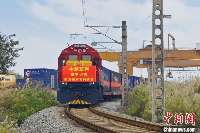 中新網(wǎng)南寧3月8日電(莫育杰 陳星宇 林鶴)3月8日10時(shí),一列滿載340噸電力鐵塔的中越班列從廣西南寧國際鐵路港開出,發(fā)往越南河內(nèi)的安員站。這是廣西首次開行電力鐵塔專列,為越南電力基礎(chǔ)設(shè)施建設(shè)提供運(yùn)力保障。