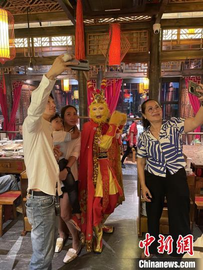 “扮演‘美猴王’最難的是神態(tài)模仿,如何展現(xiàn)‘美猴王’的靈動(dòng)是表演的精髓。”劉黎明的服裝道具都是自己定制,每天清晨和表演結(jié)束后的夜晚,他都會(huì)堅(jiān)持練功,不斷改進(jìn)動(dòng)作設(shè)計(jì),“我的表演更加活躍且富有戲劇性,注重與觀眾的互動(dòng)?!?/p>