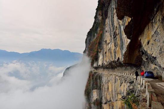 歷經(jīng)足足1年時間,終于人工開鑿出一條懸崖公路。在2011年,通過政府出資、社會資金籌集等方式,對人工開鑿的鄉(xiāng)村公路實現(xiàn)道路硬化,雙坪村的基礎設施建設更為完善。