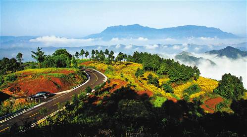 5月24日,萬(wàn)盛經(jīng)開(kāi)區(qū)金橋鎮(zhèn)青山村,晨霧下的鄉(xiāng)村公路。