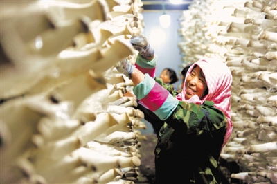 ?5月5日,在彭陽(yáng)縣閩寧現(xiàn)代農(nóng)業(yè)科技示范園,城陽(yáng)鄉(xiāng)長(zhǎng)城村村民齊秀琴和同伴正在摘收杏鮑菇,她們?cè)诩议T口務(wù)工,既照看了家,又增加了收入。閩寧現(xiàn)代農(nóng)業(yè)科技示范園創(chuàng)建于2007年,是全區(qū)120個(gè)現(xiàn)代農(nóng)業(yè)科技示范基地之一,建成食用菌工廠化生產(chǎn)線三條,日產(chǎn)各類鮮菇8噸,產(chǎn)品主要銷往銀川、西安、蘭州和周邊市區(qū),年產(chǎn)值1680萬(wàn)元。吸引當(dāng)?shù)貏?wù)工農(nóng)民600戶,人均收入達(dá)到兩萬(wàn)元以上。記者丁建峰攝