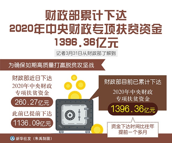 財(cái)政部累計(jì)下達(dá)2020年中央財(cái)政專項(xiàng)扶貧資金1396.36億元