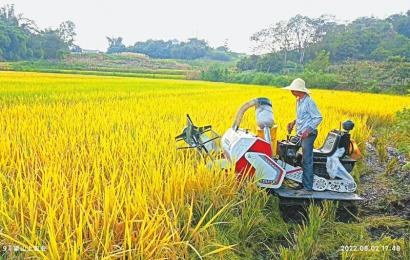 8月2日,瀘州市江陽區(qū)水稻豐收,當(dāng)?shù)剜l(xiāng)賢聯(lián)誼會(huì)組織現(xiàn)代化農(nóng)機(jī)收稻。