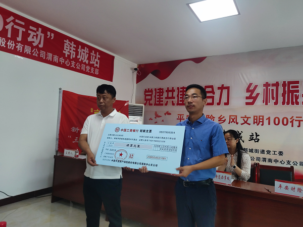 為加快推進(jìn)鄉(xiāng)村振興,實(shí)現(xiàn)集體增收、群眾致富,在市財(cái)政局、農(nóng)業(yè)農(nóng)村局、鄉(xiāng)村振興局、金融服務(wù)中心、新城街道辦事處的大力支持和促進(jìn)下,8月8日,新城街道重陽(yáng)村與平安產(chǎn)險(xiǎn)渭南中心支行在重陽(yáng)村舉行“鄉(xiāng)風(fēng)文明100行動(dòng)”簽約儀式,實(shí)行黨建共建,進(jìn)行金融幫扶,助力產(chǎn)業(yè)振興。