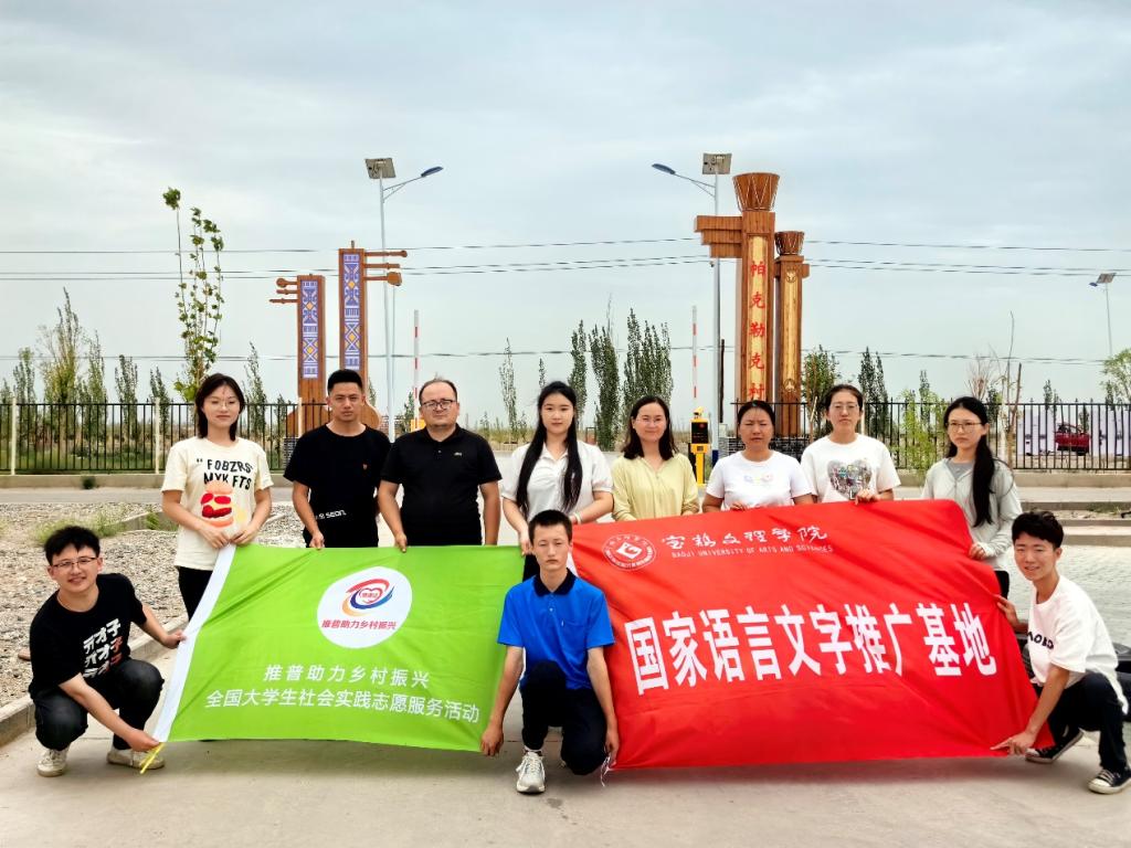 7月31日至8月6日,寶雞文理學(xué)院大學(xué)生服務(wù)隊赴新疆阿克蘇地區(qū)溫宿縣柯柯牙鎮(zhèn)帕克勒克村開展“書同文語同音人同心”推普助力鄉(xiāng)村振興社會實踐志愿活動,本次活動由國家語言文字推廣基地(寶雞文理學(xué)院)組織實施。駐村第一書記張玉良、基地核心成員何艷萍副教授以及近100名學(xué)生參加了開班儀式。