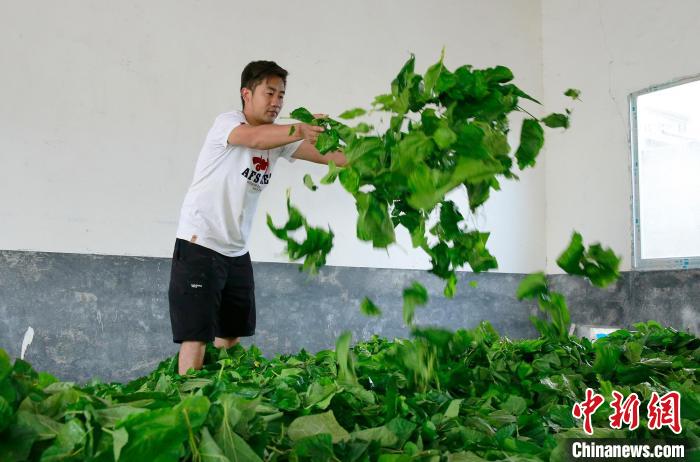 葵建煒在晾桑葉。韋曉平攝