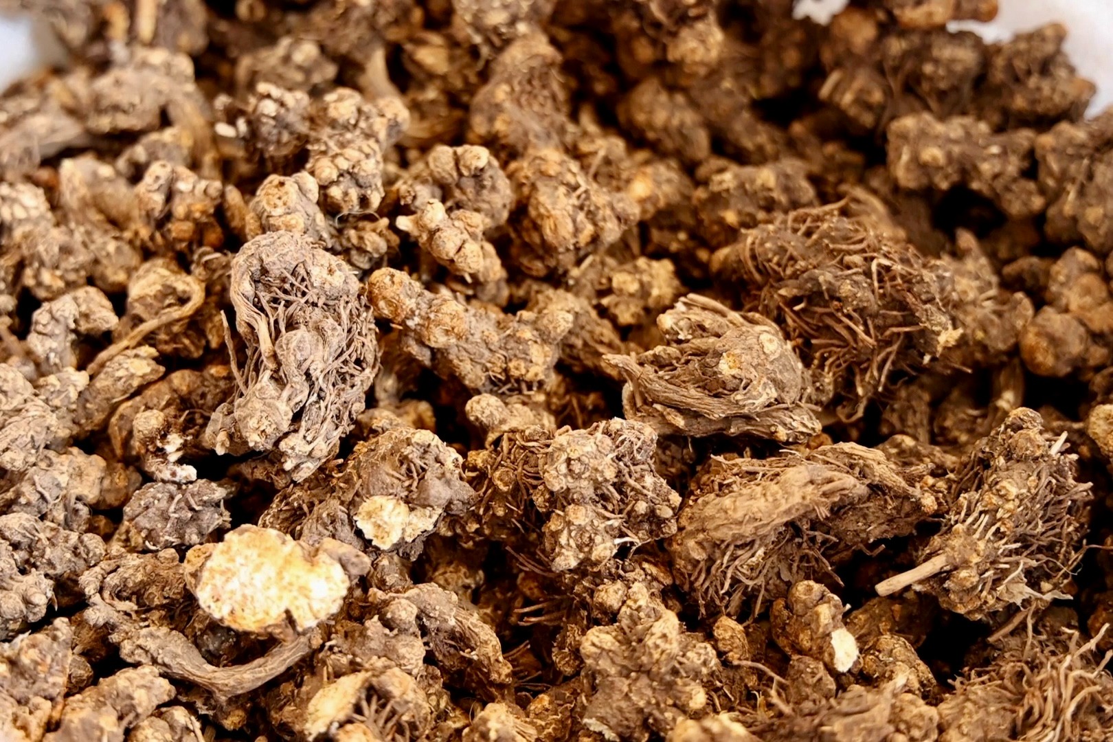 隨著翻耕機(jī)的穿梭,成片蒼術(shù)飽滿的根莖冒出地頭,村民們頭戴草帽,手持工具,熟練地對蒼術(shù)進(jìn)行二次的除土作業(yè),陽光灑過地頭,映出農(nóng)民們收獲的喜悅?!拔医衲攴N了一畝半蒼術(shù),預(yù)計能收入700來公斤,比過去種玉米收入翻五倍?!秉S陵縣店頭鎮(zhèn)建莊村建莊組村民余偏林說。