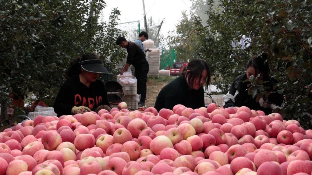 分裝好的蘋果不用出果園,就被果商當場訂購,黃陵縣宏昌果業(yè)有限責任公司總經理 周耀道告訴記者,多年來一直在縣區(qū)周圍收購蘋果。趁著價格好,幫著大家把蘋果銷售掉,讓大家早早收益。他說:“我們公司有梨基地、有蘋果基地,蘋果現(xiàn)在已經開始入庫了。今年田莊的蘋果還是豐收,晚富士的產量跟去年相差不大,但是商品率比去年高了,現(xiàn)在果農的蘋果銷售出去的有70%了,剩下的30%全部入庫了。我們公司現(xiàn)在是以"公司+合作社+果農"的模式運行,加上線上銷售,每一年我們的銷售大概在600萬斤左右”。
