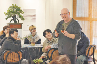 茅檐石壁的傳統(tǒng)民居,造型多變的川派盆景,位于四川崇州市觀勝鎮(zhèn)的嚴家彎灣,人和、景美、風(fēng)光好。沿著蜿蜒曲折的小徑,走過幾處民居,便來到加拿大盆景師查德·辛克萊(中文名“白熊”)的小院。受外婆影響,白熊自小便對中國傳統(tǒng)文化充滿好奇。因熱愛中式盆景,他來到中國潛心學(xué)習(xí)研究,一晃已過去20多年。
