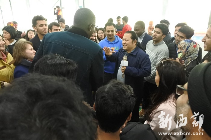 劉翔教授用一口流利的英語和留學(xué)生們交談
