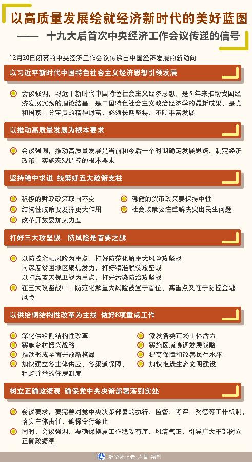 新華社圖表,北京,2017年12月20日圖表:以高質(zhì)量發(fā)展繪就經(jīng)濟發(fā)展新時代的美好藍圖——十九大后首次中央經(jīng)濟工作會議傳遞的信號新華社記者盧哲編制