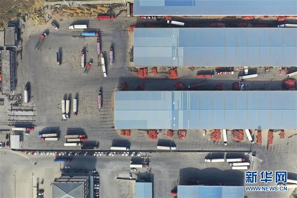 這是廣西憑祥市邊境貿易貨物監(jiān)管中心貨場(1月4日攝,無人機照片)。 新華社記者 曹祎銘 攝