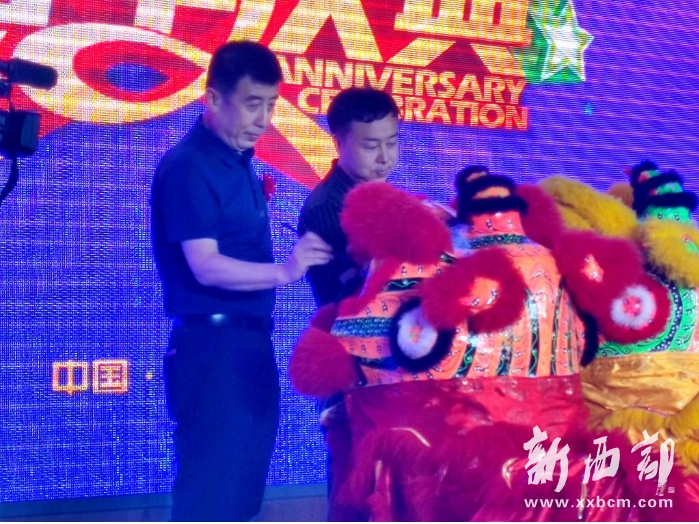 ▲千度億人集團董事長王龍(右)和財務(wù)總監(jiān)馬俊飛共同執(zhí)筆為“舞獅”點睛 (郭菲菲/攝)