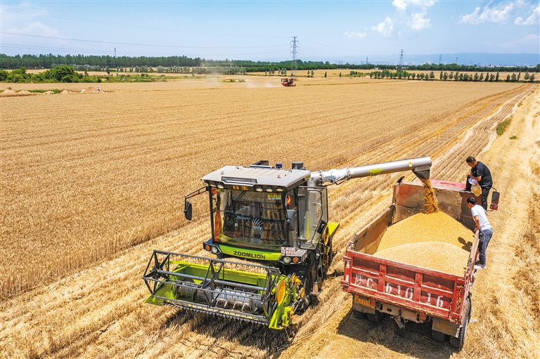 ▲6月13日,寶雞市陳倉(cāng)區(qū)慕儀街道第三村村民在收獲小麥(資料照片)。