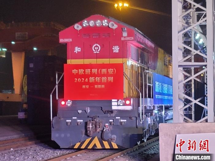 中新網(wǎng)西安1月1日電 (記者 阿琳娜)2024年元旦零點整,伴隨著悠揚汽笛聲,中歐班列(西安)2024年首趟班列,從西安國際港站始發(fā),一路向西,奔向俄羅斯。