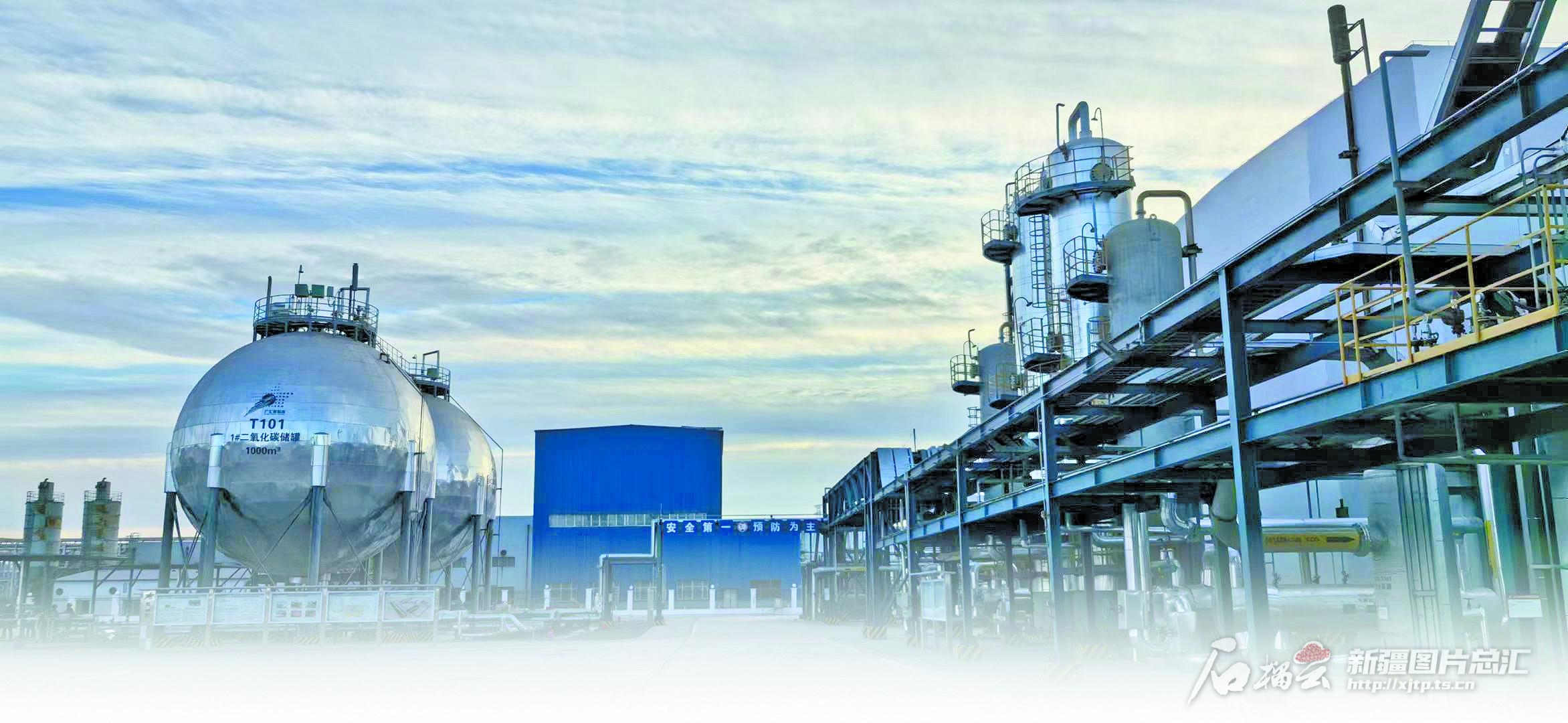 伊吾工業(yè)園區(qū)淖毛湖煤化工循環(huán)經(jīng)濟產(chǎn)業(yè)園內(nèi),新疆廣匯碳科技綜合利用有限公司10萬噸/年二氧化碳捕集與利用示范項目(CCUS項目)廠區(qū)外景(2023年11月26日攝)。□石榴云/新疆日報記者魏永貴攝