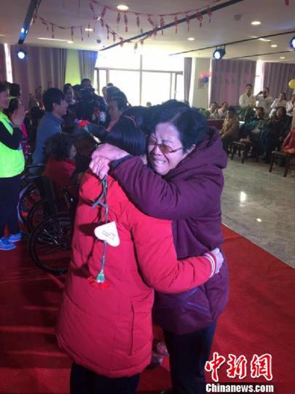 圖為活動(dòng)現(xiàn)場(chǎng)家人互相擁抱,表示感恩。 鐘欣 攝