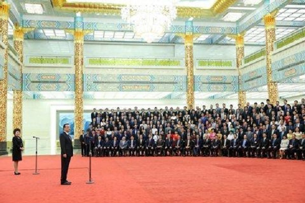 6月12日上午,李克強(qiáng)在人民大會(huì)堂金色大廳會(huì)見出席第二屆世界華僑華人工商大會(huì)全體代表并發(fā)表講話。