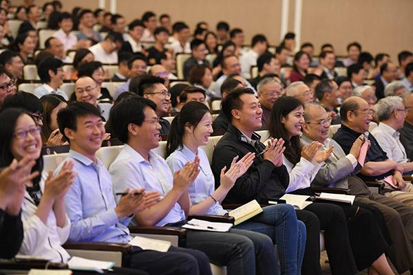 他特別提及復(fù)旦大學(xué)的校訓(xùn)“博學(xué)而篤志,切問而近思”。“這兩句話,同上海的城市精神,是息息相關(guān)的。所以復(fù)旦是立足上海,面向全國,服務(wù)世界”。這番話贏得在座師生熱烈掌聲。
