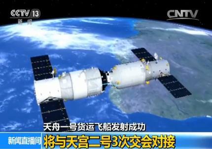 西安衛(wèi)星測控中心高級工程師 潘偉全:截至到今天上午天舟一號貨運飛船已經(jīng)完成了兩次的軌道控制,目前,飛船的飛行狀況良好,后續(xù)還要再進行兩到三次的軌道控制,保證貨運飛船控制到天宮二號的后下方,完成飛船的自動交會對接,天宮二號和天舟一號形成這個組合體,在運行期間呢,進行一次推進劑補加,就是我們常說的“空中加油”,將貨運飛船的燃料補加給天宮二號。