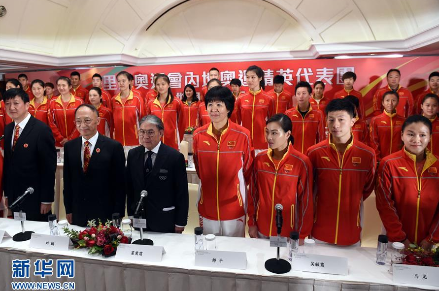 當(dāng)日,里約奧運會內(nèi)地奧運精英代表團到達香港后在海景嘉福洲際酒店舉行新聞發(fā)布會,介紹訪問香港的行程,并與媒體互動。新華社記者 盧炳輝 攝