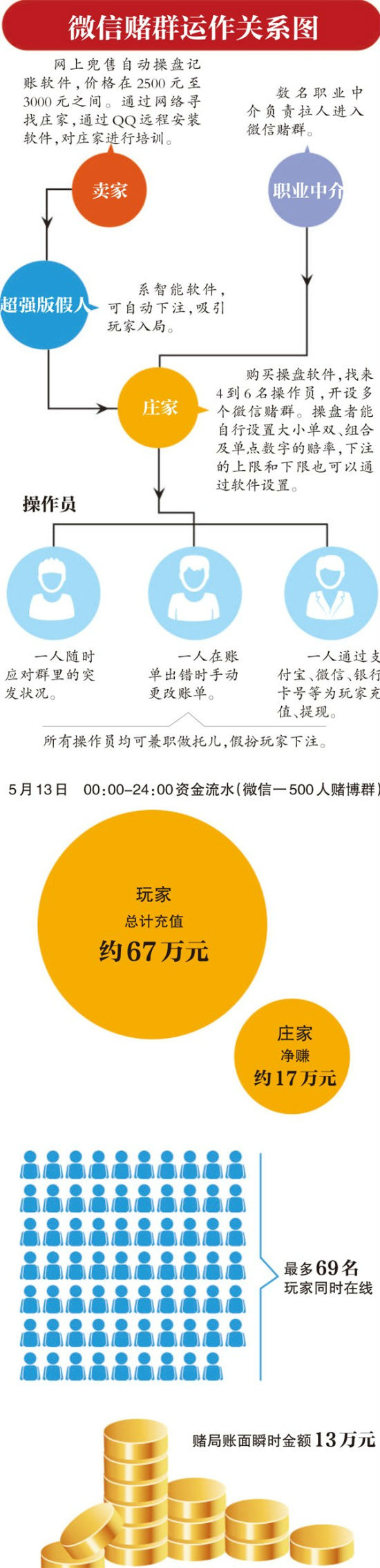 6月12日,某報(bào)記者臥底微信賭場的報(bào)道給人們揭開了“微信賭場”的可怕內(nèi)幕:開一局只需5分鐘,下注、開局、下注……賭局像車輪滾動(dòng),你甚至來不及眨幾下眼,也不知道錢輸給了誰,成千上萬賭資就已蒸發(fā)。一位賭徒這樣描述,“血淋淋的,押下去是一串沒有感覺的數(shù)字,玩完才發(fā)現(xiàn)輸了一大筆,這比現(xiàn)實(shí)中的賭場恐怖太多?!?/p>
