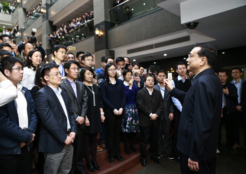 4月1日,李克強總理到國家稅務(wù)總局考察。(中新社 記者 劉震 攝)