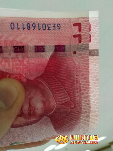原標(biāo)題:宜賓市民取到新版百元有點怪水印頭像現(xiàn)“劉?!?/p>