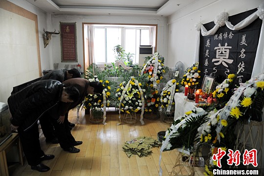 11月16日,各界人士前往家中吊唁郭潔老人。中新社記者 張遠(yuǎn) 攝