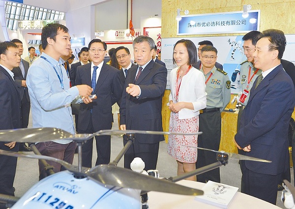 開幕式前,盧展工和王東明、魏宏及參加開幕式的國內(nèi)外嘉賓前往科技城會展中心各展館,參觀考察了主賓國捷克展示區(qū)以及總裝備部、中科院、軍民融合、電子信息、先進(jìn)制造、新材料、生物醫(yī)藥、新能源與節(jié)能環(huán)保、國家自主創(chuàng)新示范區(qū)、國家級高新區(qū)、中國(綿陽)科技城、無人駕駛航空器創(chuàng)新與應(yīng)用等展區(qū),詳細(xì)了解參展企業(yè)以及科技產(chǎn)品技術(shù)研發(fā)和轉(zhuǎn)化應(yīng)用有關(guān)情況。