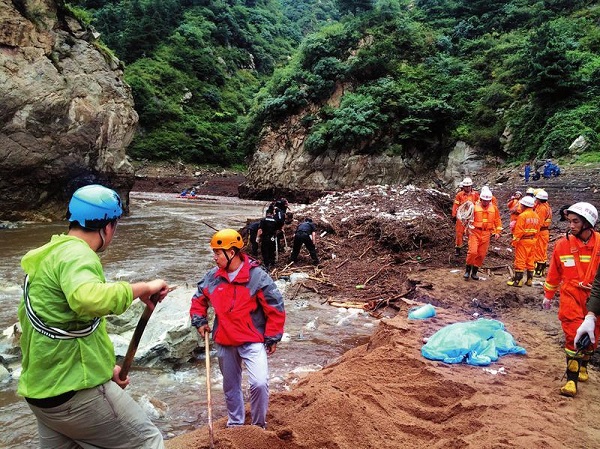 經(jīng)過調(diào)整,救援隊(duì)員自事發(fā)現(xiàn)場(chǎng)河道向水庫(kù)方向搜尋,經(jīng)過多方努力,早上8點(diǎn)左右在溪流與小峪水庫(kù)的連接處一被洪水沖擊形成的堆積物中尋找到了遇難者遺體。目前小峪水庫(kù)正在泄洪。救援仍在繼續(xù)。