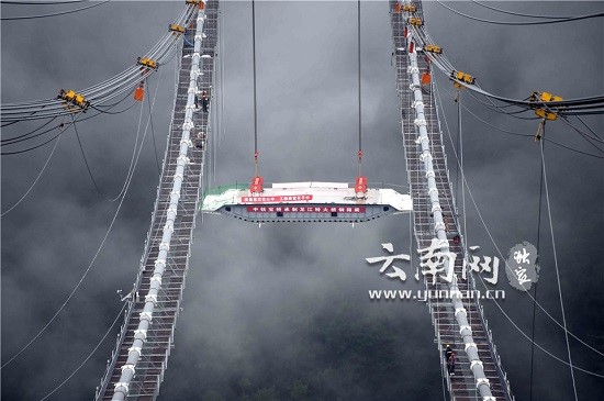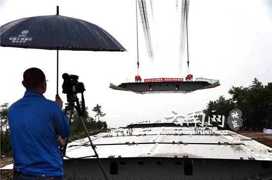 亞洲最大的山區(qū)懸索橋龍江特大橋第一節(jié)段鋼箱梁吊裝成功