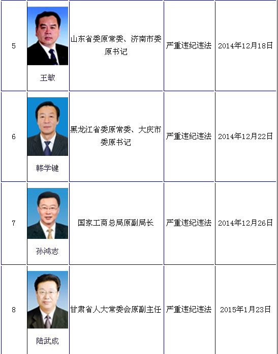 中央紀(jì)委監(jiān)察部網(wǎng)站近日刊文時(shí)再次指出,當(dāng)前反腐敗斗爭形勢依然嚴(yán)峻復(fù)雜,要重點(diǎn)查處十八大后不收斂、不收手,問題線索反映集中、群眾反映強(qiáng)烈的領(lǐng)導(dǎo)干部。10人名單如下: