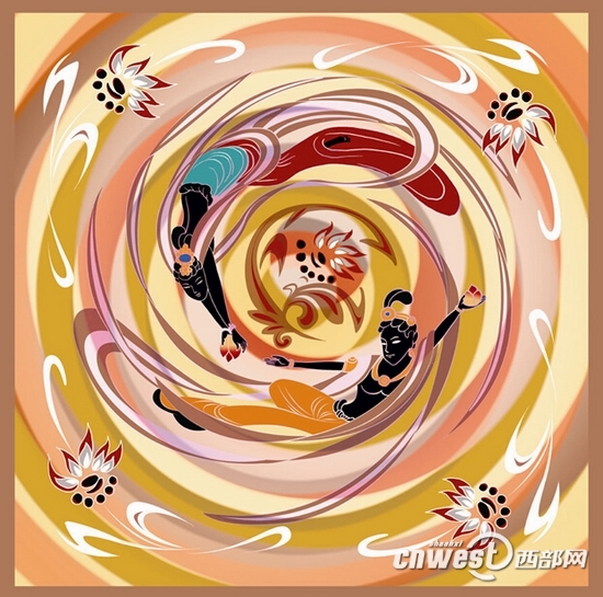 西周的青銅器,秦代的兵馬俑,女皇武則天,農(nóng)民畫與剪紙……古都西安悠久燦爛的歷史,濃縮成一系列的符號,被繪制在了一條條絲巾上。