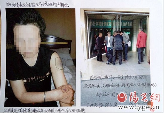 石云剛向記者透露到,在糾紛中,院方人員曾經(jīng)多次毆打死者的家屬,導(dǎo)致死者家屬身體上出現(xiàn)多處淤青。