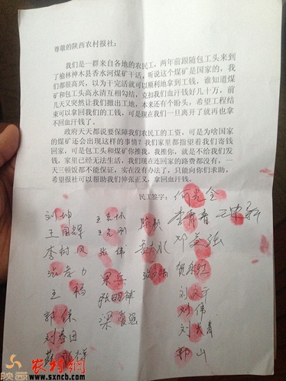 在神木縣香水河煤礦干活的農(nóng)民工,他們何時(shí)能夠把工資拿到手?本網(wǎng)將繼續(xù)關(guān)注。(記者 張海明 邵林喜)