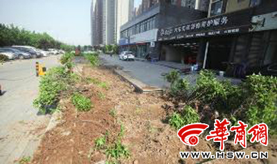 26日下午,華商報(bào)記者來(lái)到繽紛南郡小區(qū)北門,業(yè)主馮先生說(shuō):“這些花壇屬于小區(qū)所有,物業(yè)破壞這些花壇沒(méi)有跟業(yè)主打招呼,很不合理?!毙^(qū)物業(yè)經(jīng)理牛先生承認(rèn)挖花壇沒(méi)經(jīng)過(guò)業(yè)主同意。牛先生說(shuō),小區(qū)北門將改造成停車場(chǎng)。對(duì)于華商報(bào)記者提出移植綠化要向園林部門申請(qǐng)的問(wèn)題,他回復(fù)說(shuō):“可能不需要吧?!?